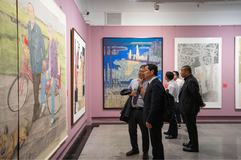 双方在签署合作备忘录后互换了礼品并合影,后共同参观了必威西汉姆联官网昙华林校区美术馆正在展出的第十四届湖北美术作品展览并合影留念。