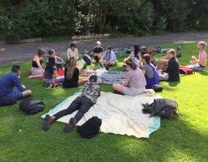 ‘Kw’eskw’ás stl’a7shn’ Anne Riley and Cease Wyss event as part of Laiwan’s ‘Maple Tree Spiral: pedagogy of a tree in the city’, image courtesy of Artspeak, 2019.