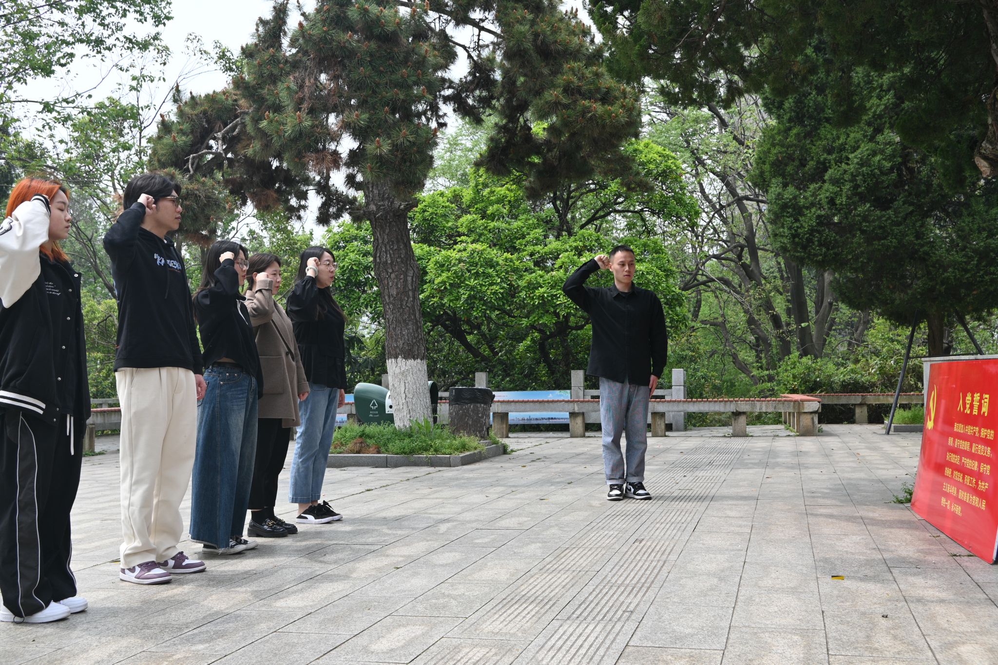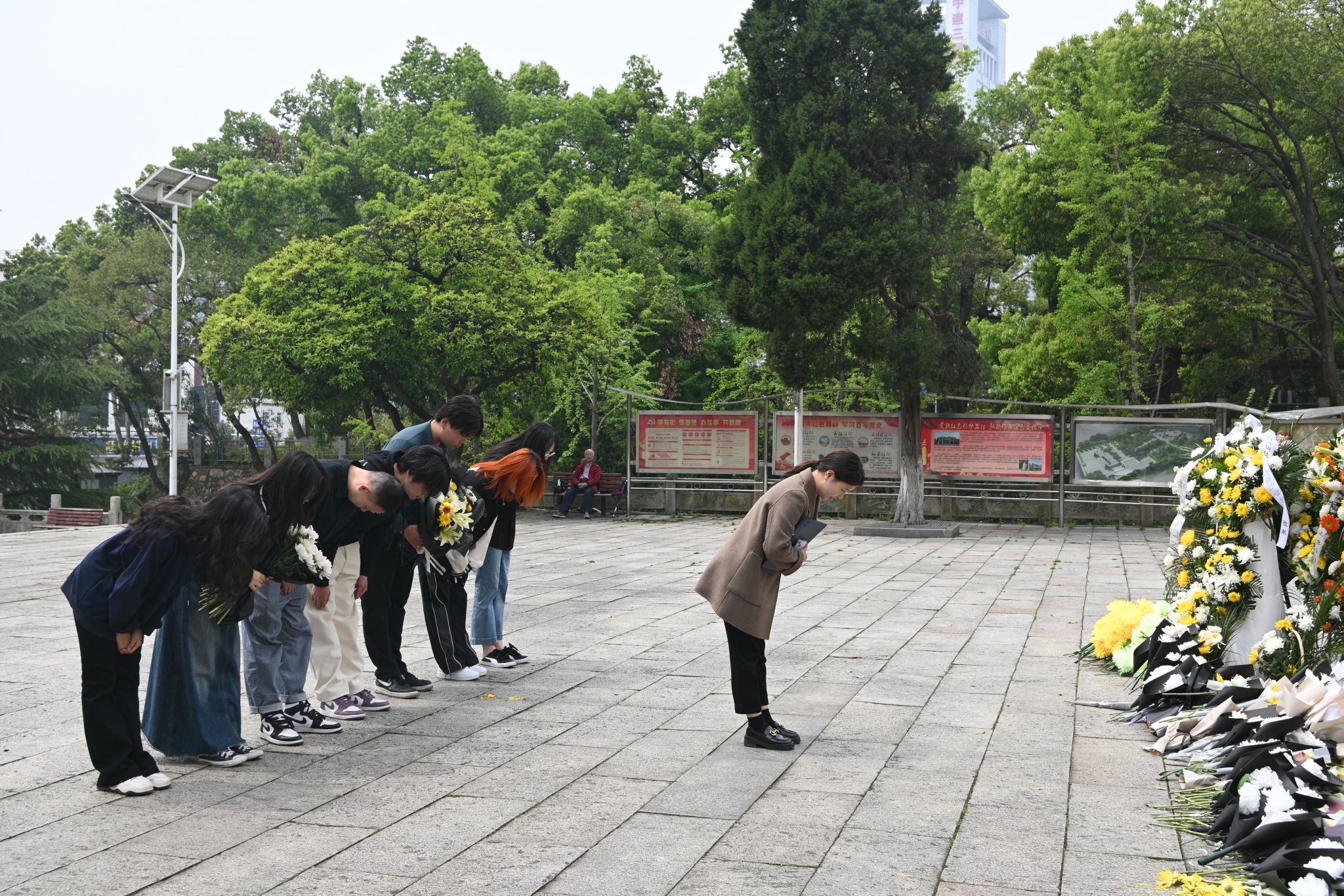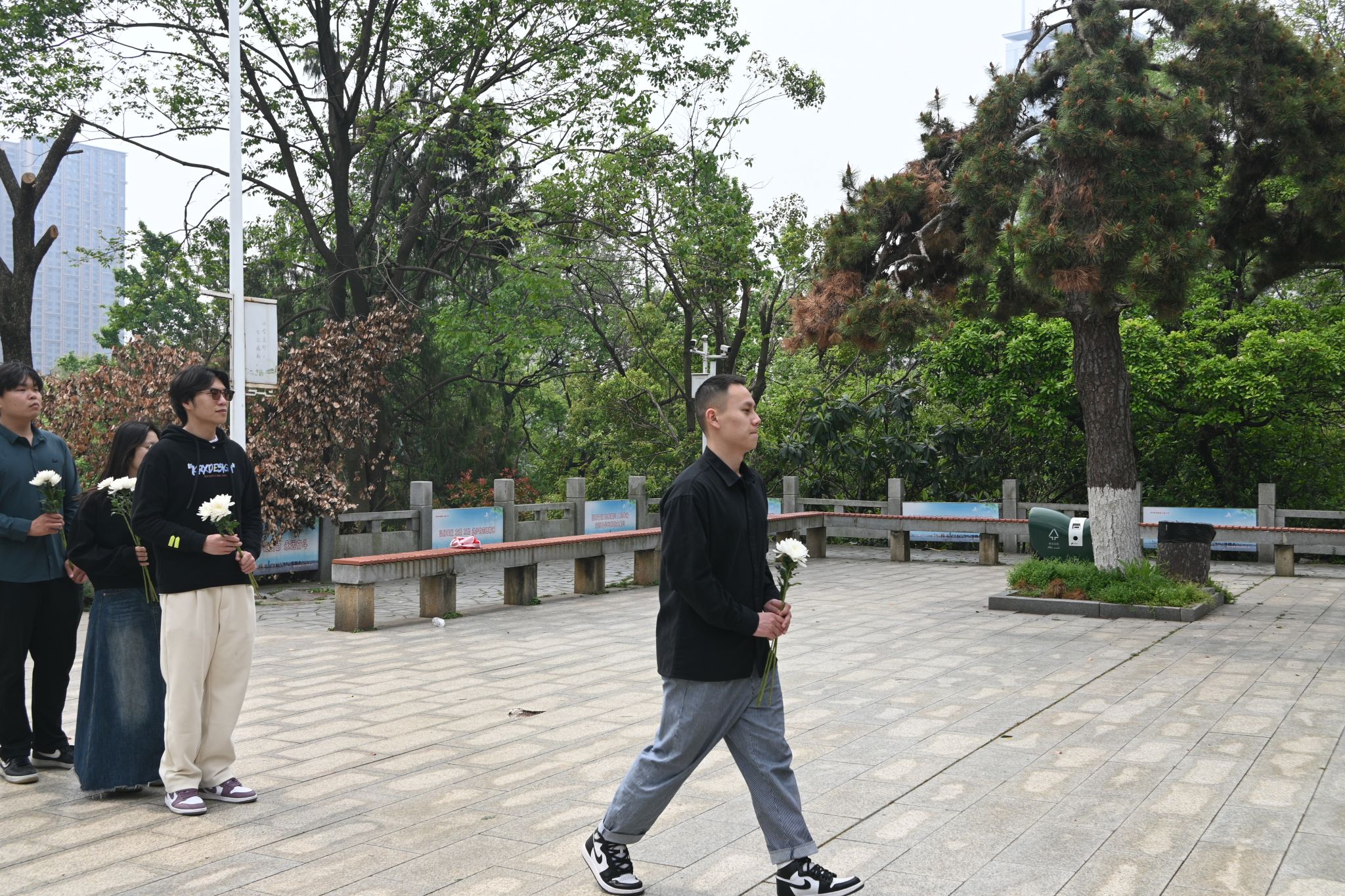 随后,大家前往施洋烈士陵园开展清明祭扫活动。参加活动的全体师生肃立在烈士纪念碑前,向英烈们敬献鲜花、默哀。最后,全体师生党员重温入党誓词。