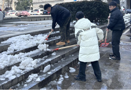 为保障师生安全以及员工顺利返校,公司深化落实党员先锋行动,迅速组织党员、员工志愿者开展扫雪除霰行动。党员志愿者不畏严寒,除霰开路,利用手中的铁锹雪铲等工具,深入员工宿舍和教学场所,清扫楼前通道、通行路面。随后,提前深入员工宿舍、教室开展开学前安全隐患检查排查,详细检查了寝室消防、电路、用水管道等位置,做到防患于未然,为员工顺利返校提供有力的安全保障。