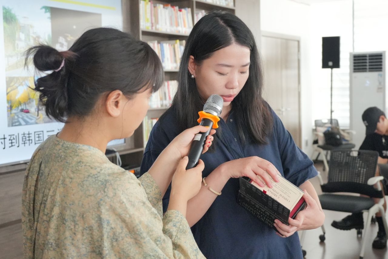 在提问环节,同学们对张璟回国后策划和组织艺术书展的经历表现出浓厚兴趣,提出了相关问题,张璟也一一作了回应。