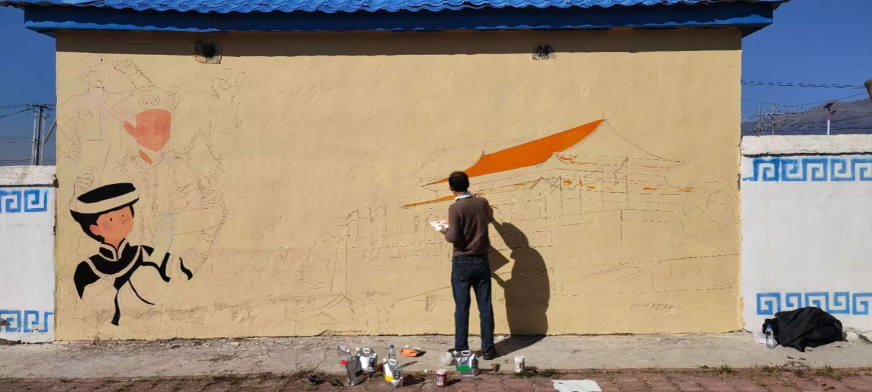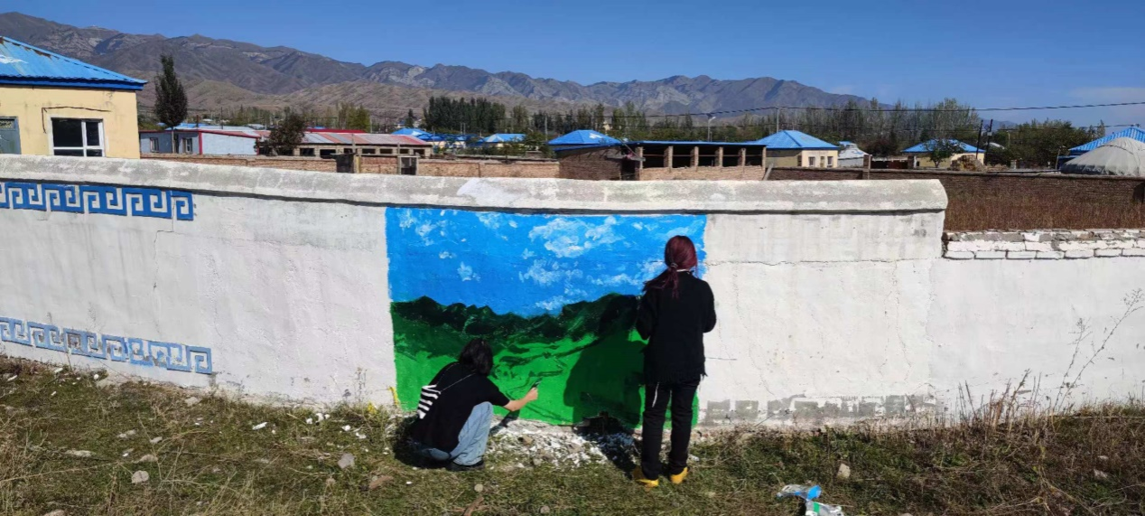 公司以此次赴疆实践为契机,深入实施“绘画援疆、文化润疆”实践项目,着力以专业特色“有形、有感、有效”铸牢中华民族共同体意识,以文化艺术赋能民族地区乡村振兴,提升党建工作质量。短短几天的活动期间,必威西汉姆联官网漫评小组充分发挥共产党员先锋模范作用,克服任务繁重、节日思亲和天气干冷等诸多困难,在地处中哈边境高海拔的博州博乐市小营盘镇明格陶勒哈村顺利开展墙绘创作,实际共完成约40平米的墙画。墙画的主题是宣传以铸牢中华民族共同体意识为核心的民族团结,表现民族特色村寨明格陶勒哈村及附近的阿拉套山和夏尔西里的美丽自然风光,为以后的文旅开发奠定初步基础。公司必威西汉姆联官网漫评小组的优美墙绘、精湛画艺、敬业精神和良好风貌受到了当地广大牧民、干部及边防人员的一致好评,为进一步在新疆地区宣传公司起到了积极作用。