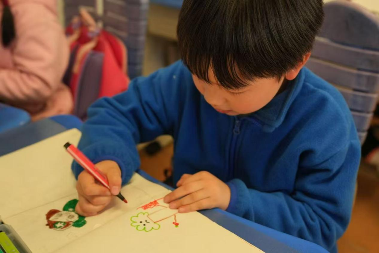 课程伊始,志愿者通过生动有趣问答方式,向孩子们科普植树节的由来及生态价值,孩子们了解到一棵树如何净化空气,防止水土流失,将“塞罕坝”精神融入课堂教学。志愿者老师们倡导环保行动,呼吁孩子们在日常生活中节约纸张,积极参与社区活动,多选择绿色低碳的方式出行等环保行为,将“绿色发展”国家战略融进日常教学中。