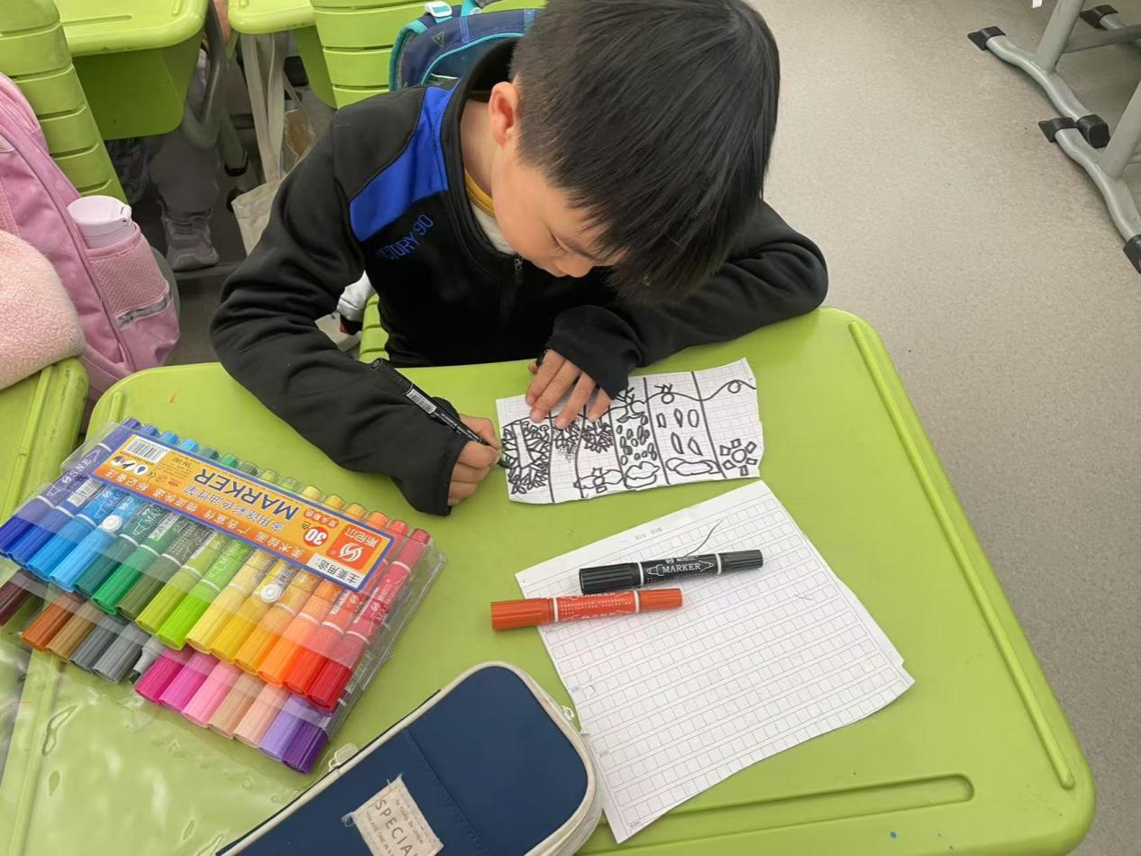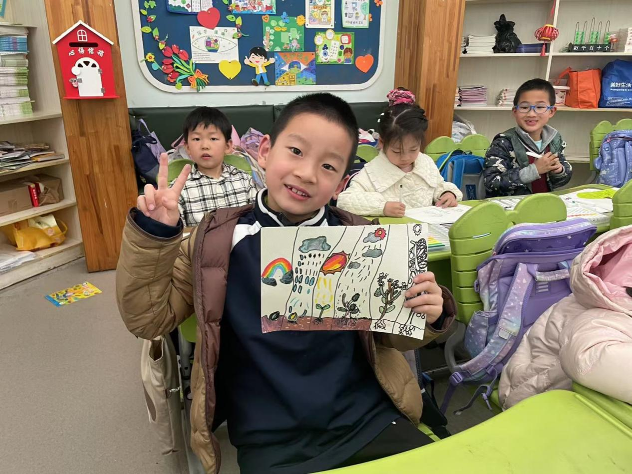 美术不仅是技巧,更是孩子们情感的表达,看到孩子们用画笔表达对自然的爱,我们相信环保的种子已在他们心中生根发芽”活动参与的志愿者表示。孩子们在志愿者老师的引导下,有的画不同天气下的树木生长,有的介绍不同季节树的长势,还有的用手指点成花朵,无一不是对大自然美妙的表达。