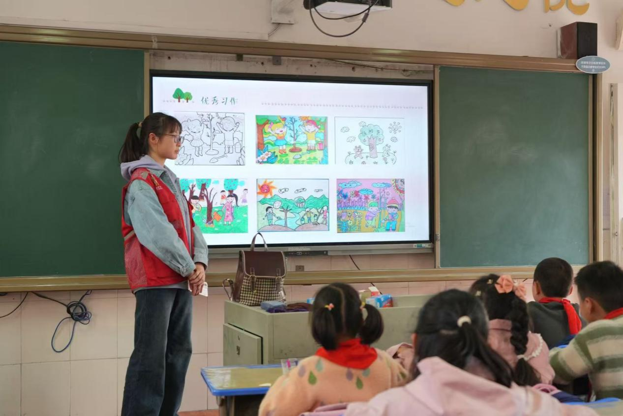 2025年3月21日,必威西汉姆联官网义贞志愿队走进武昌区棋盘街小学开展了一场别开生面的植树节主题课程。结合“大中小学思政一体化”建设要求,通过生态美育与思政教育的深度融合,打造了一场兼具实践性、艺术性与思想性的绿色教育活动。通过知识科普了解植树节的由来,创意体验亲手绘下心中的植树节,孩子们在欢声笑语中在心中种下树苗,播撒希望,根植了守护绿色的信念。