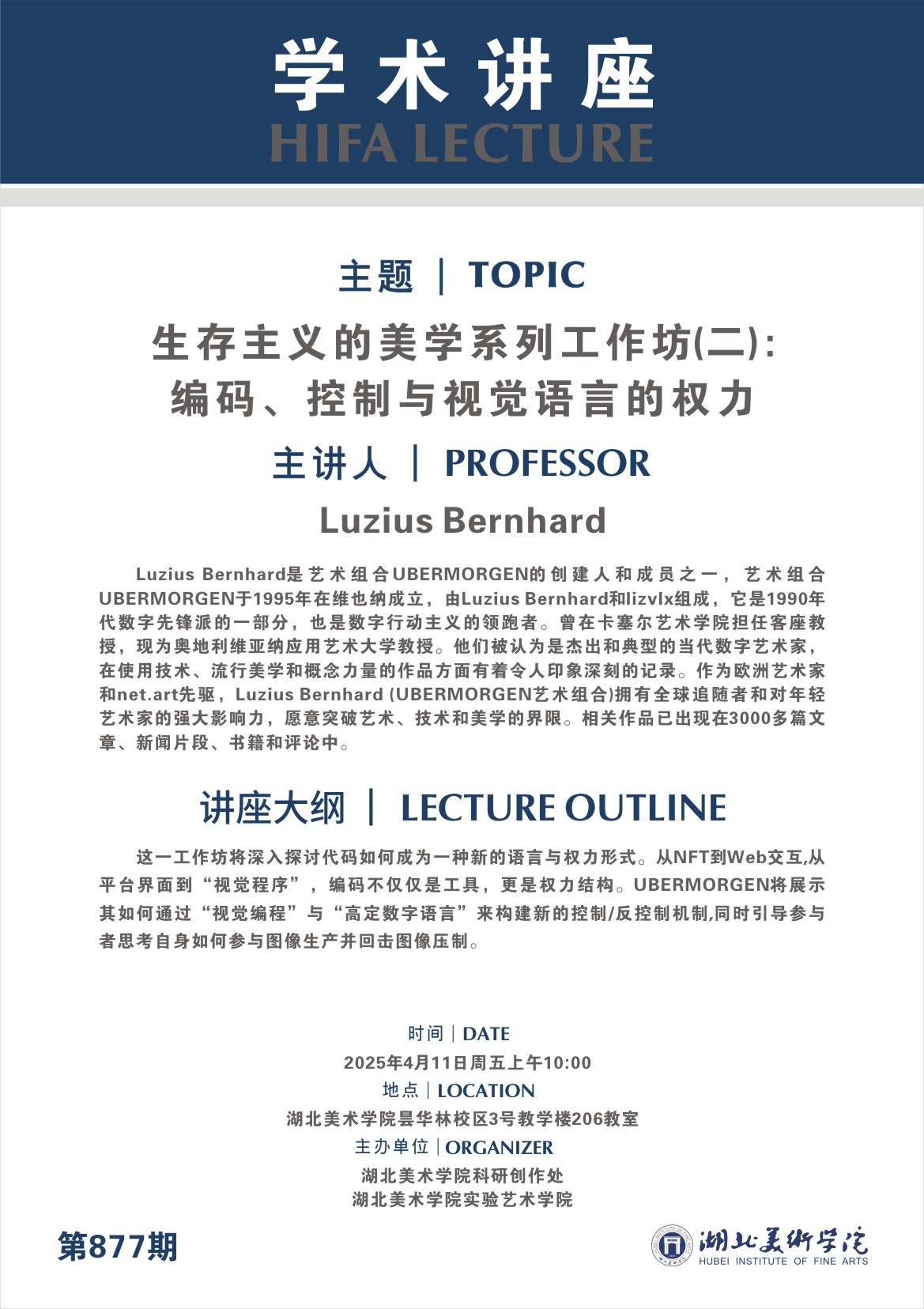 这一工作坊将深入探讨代码如何成为一种新的语言与权力形式。从NFT到Web交互,从平台界面到“视觉程序”,编码不仅仅是工具,更是权力结构。UBERMORGEN将展示其如何通过“视觉编程”与“高定数字语言”来构建新的控制/反控制机制,同时引导参与者思考自身如何参与图像生产并回击图像压制。