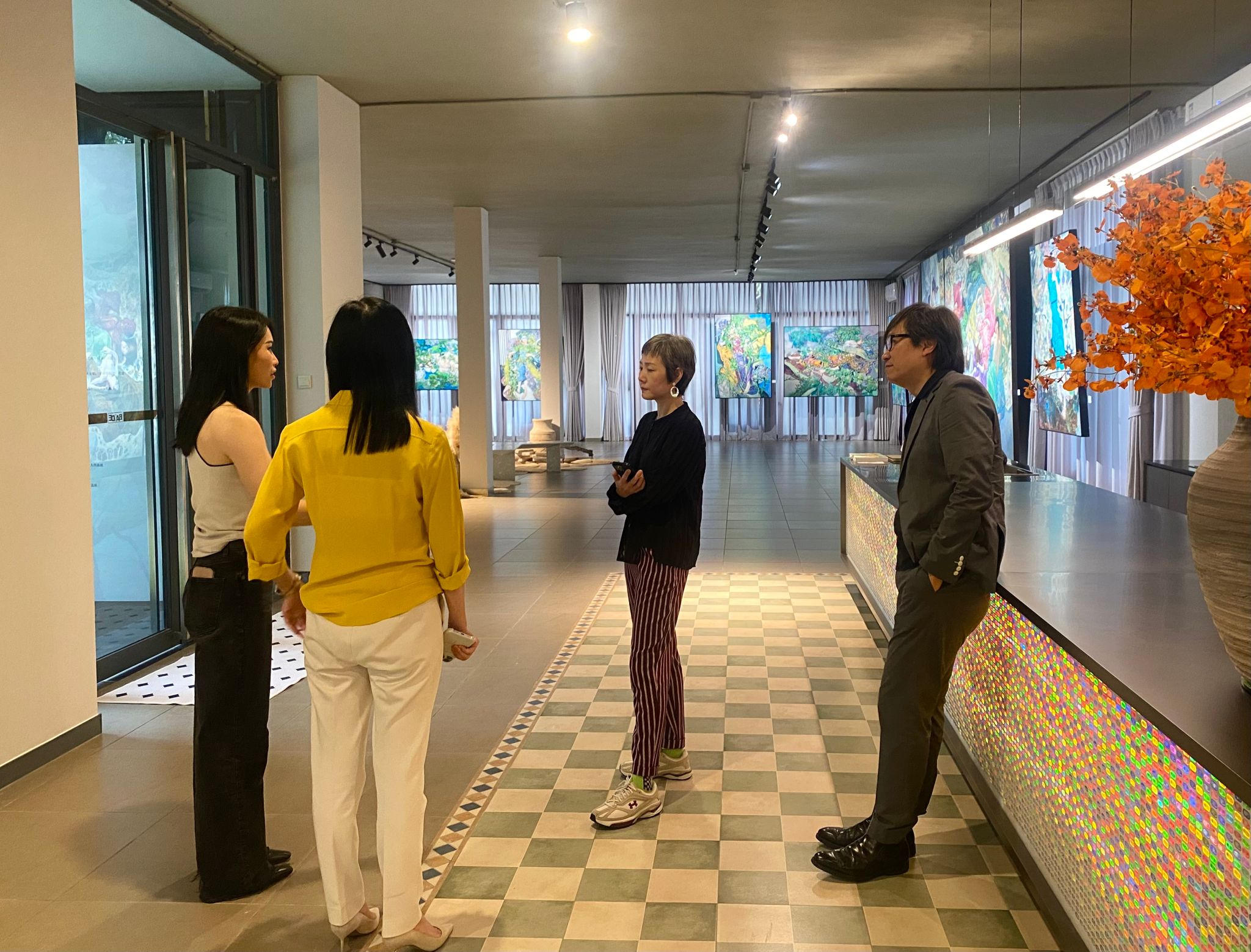 高虹、王燕、朗雪波与思联艺术负责人热情交流©实验绘画工作室