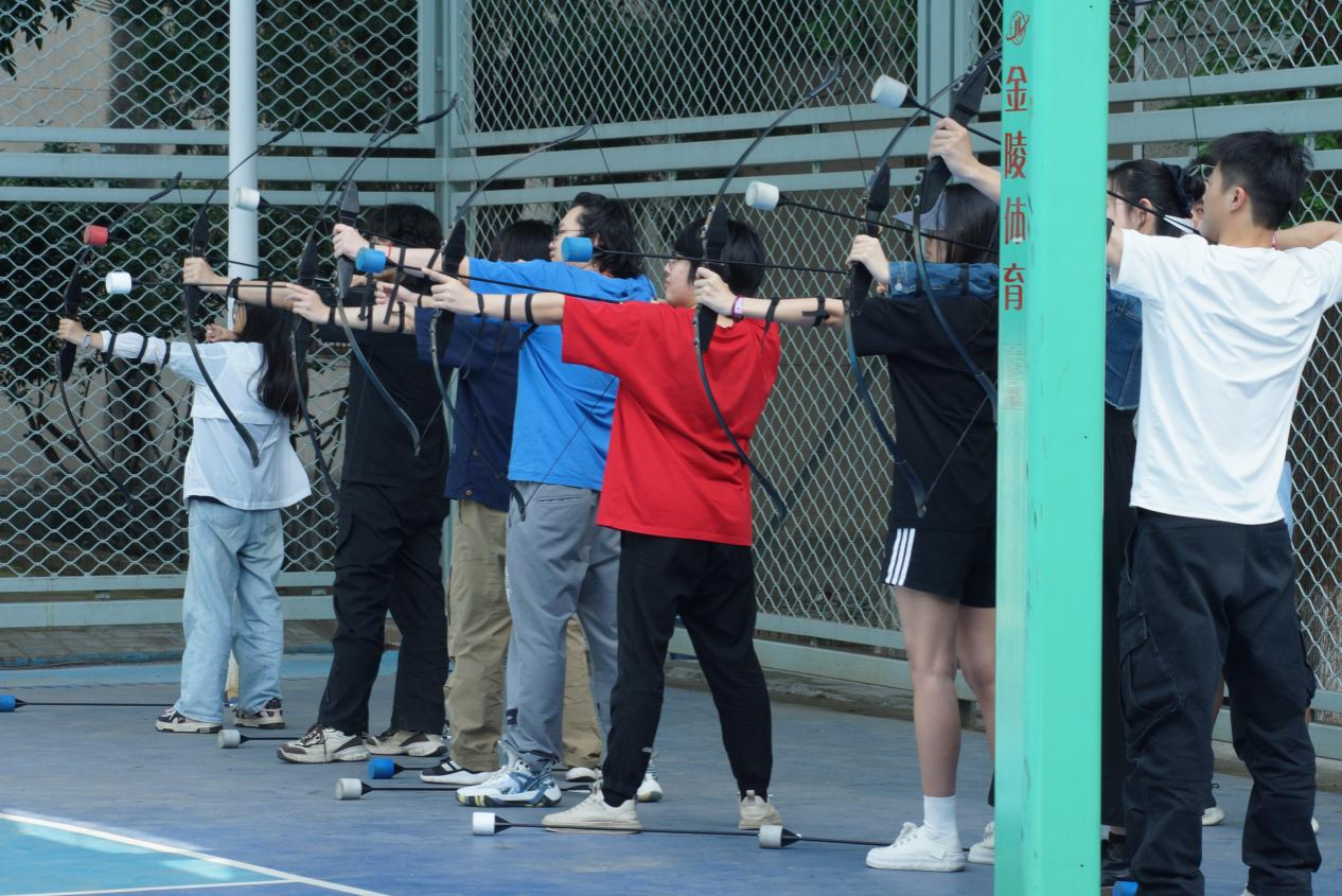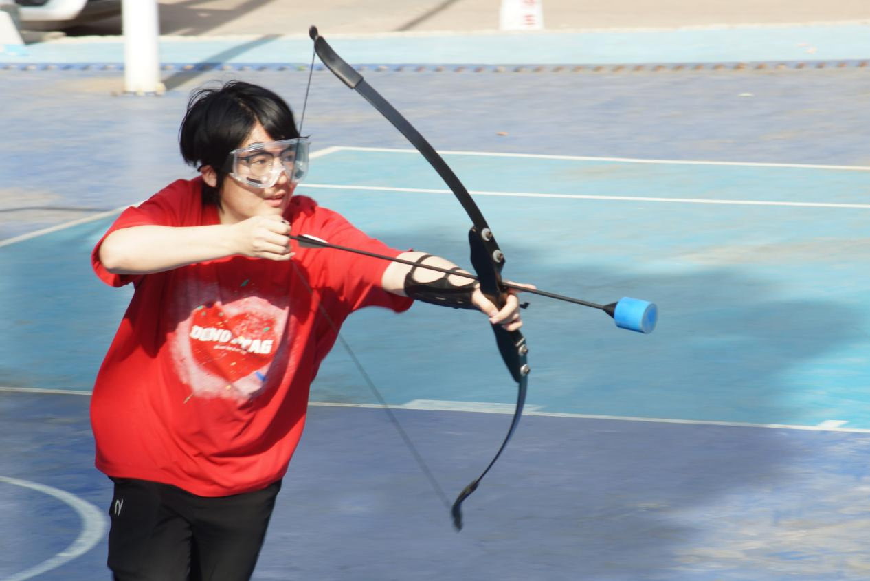 场地上摆着象征"焦虑""迷茫"等字样的固定靶纸,参与者需用特制泡沫箭射击负面情绪标识。当箭矢命中靶心时,击中白色区域并将其击落即表示救赎成功,在一片片欢声校语中,同学们纷纷表示“每射中一个靶心,都像完成一次自我对话,都感觉自身压力小一些。”