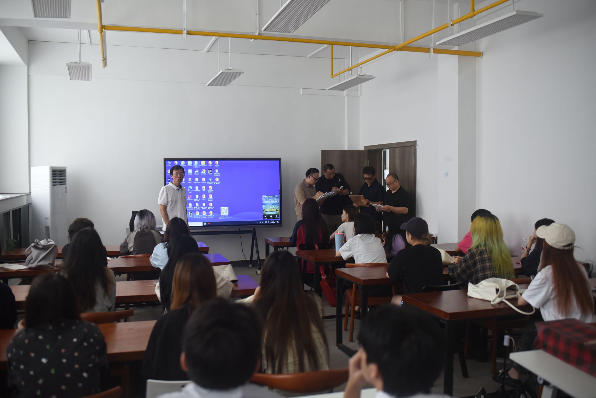 本次检查由必威西汉姆联官网副经理梅健、跨媒体艺术系主任鞠腾、媒介展演教研室主任祝虹和开放媒体教研室主任宋戈文组成本科教学工作质量评价小组,对本单位开设的跨专业选修课进行全面、细致的检查,并重点对课程档案的规范性,授课教师的教学态度以及员工的学习效果开展检查。