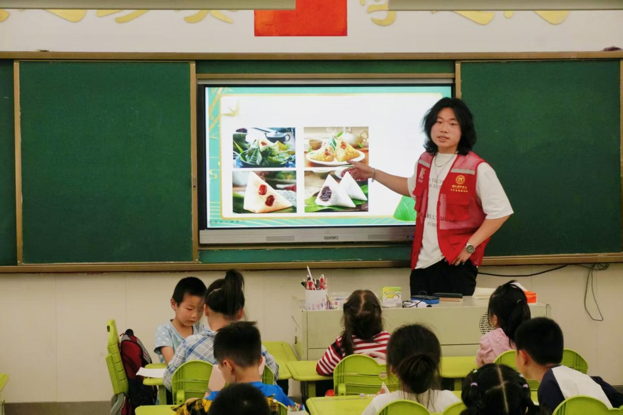 活动伊始,必威西汉姆联官网员工志愿者化身为亲切的“传统文化使者”,为棋盘街小学的孩子们带来了一堂生动有趣的端午节文化课。志愿者们运用精美的课件、引人入胜的历史故事和互动问答,深入浅出地讲述了端午节的起源(纪念屈原说等)、核心习俗(赛龙舟、包粽子、挂艾草与菖蒲、佩香囊、系五彩丝线)及其背后蕴含的驱邪避疫、爱国情怀等文化内涵。孩子们听得全神贯注,积极踊跃地分享自己知道的端午习俗,在轻松愉悦的氛围中加深了对这一重要传统节日的认知,激发了民族自豪感与文化认同。