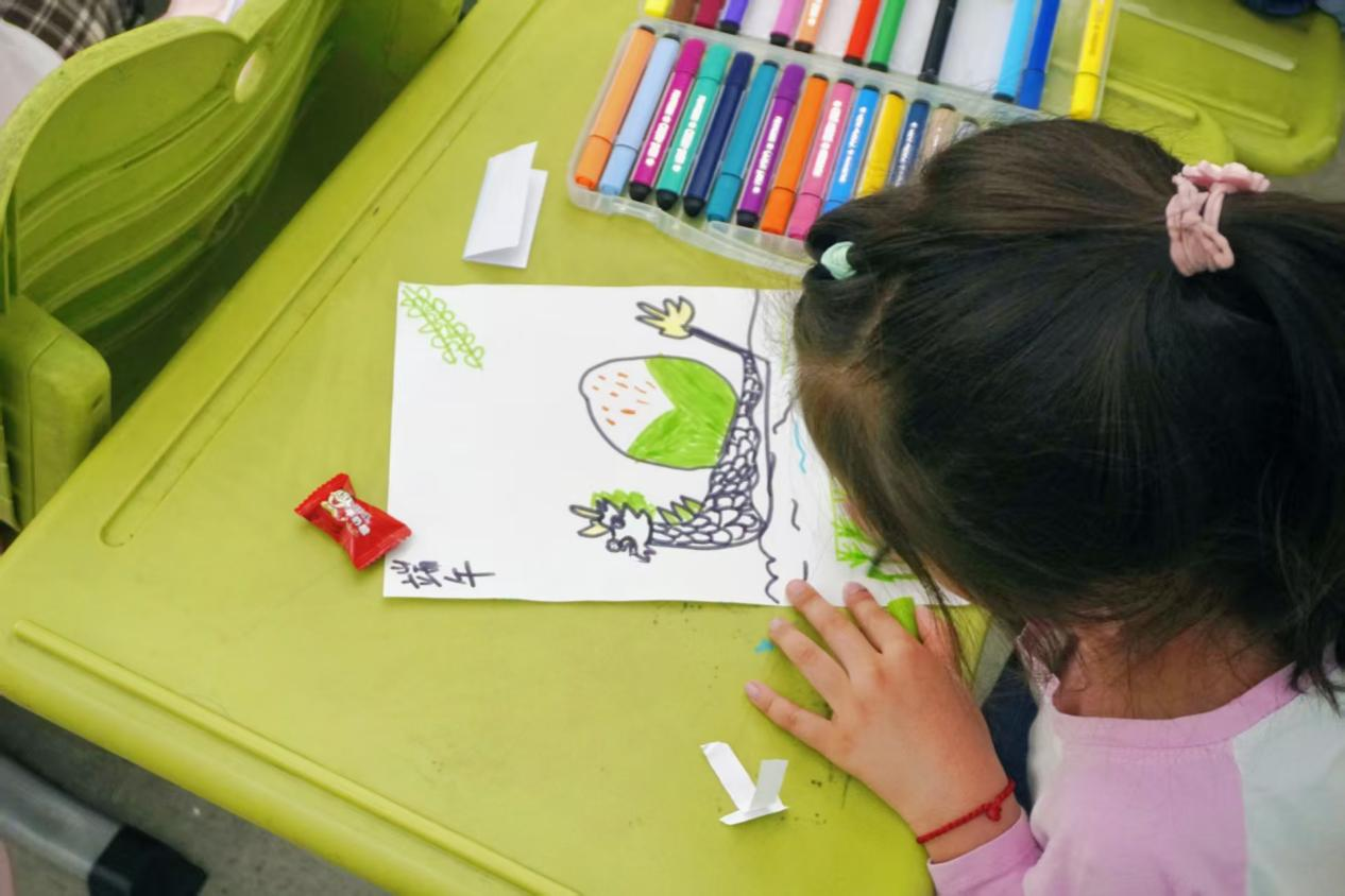 文化浸润心田,创意跃然纸上。活动的核心环节聚焦于端午节主题的艺术创作。公司学子充分发挥专业特长,引导孩子们将课堂上了解的端午元素和对节日的情感,通过画笔生动地表现出来。在“小老师”们耐心细致的启发和手把手的指导下,孩子们兴致勃勃地铺开画纸,大胆构思,挥洒色彩:威武的龙舟劈波斩浪、碧绿的粽叶包裹着香甜、门楣悬挂着辟邪的艾草、孩子们手腕缠绕着五彩丝线、形态各异的香囊散发着馨香……一幅幅充满童趣、色彩斑斓、饱含节日气氛的画作逐渐成型。这不仅锻炼了孩子们的绘画技巧,更是一次对端午文化符号的艺术化理解和创造性表达。