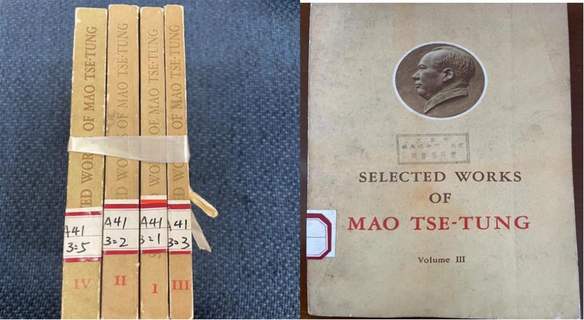 本次捐赠的藏书均为彭柱武先生个人多年珍藏的外文类藏书,涵盖英语、日语和俄语三种语种,涉及中外文学、哲学和语言学等领域,均为二十世纪各个历史时期国内外出版的外文书籍,具有较高的学术价值和收藏价值,比如外文出版社出版的SELECTED WORKS OF MAO TSE-TUNG(Volumes I-IV)即英文版《毛泽东选集》(全4卷)。
