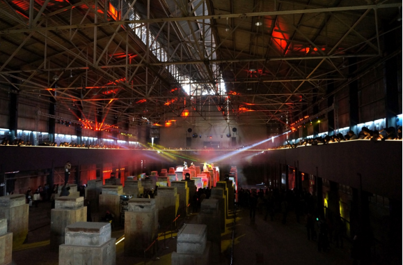 《宇宙方舟2020之火龙眼》将在深圳著名创意园区“价值工厂”的“机械大厅”举行,表演涉及到的场地面积超过五千平米。大厅为广东浮法玻璃有限公司厂房熔窑部分旧址。 1985年,该厂由由中、美、泰、英、意合资建成,2009年,在经历了全球金融危机之后停产。大厅里气势恢宏的88个熔窑柱头,宛如兵马俑阵营,展现出深圳工业文明的原点印记。