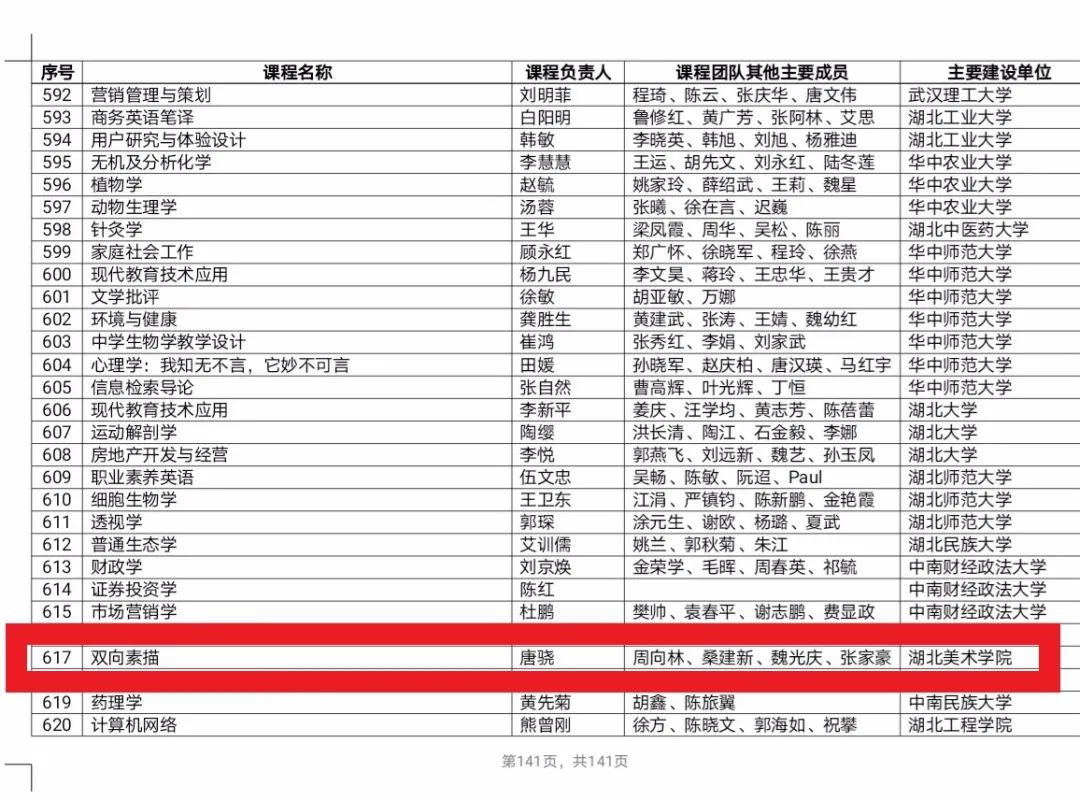 在此次地方和中央双赛道评选所提交的近万门课程申请,最终首批认定的所有课程中,美术学科课程为23门,而线上线下混合式美术学科实践类课程全国仅1门,即“双向素描”。