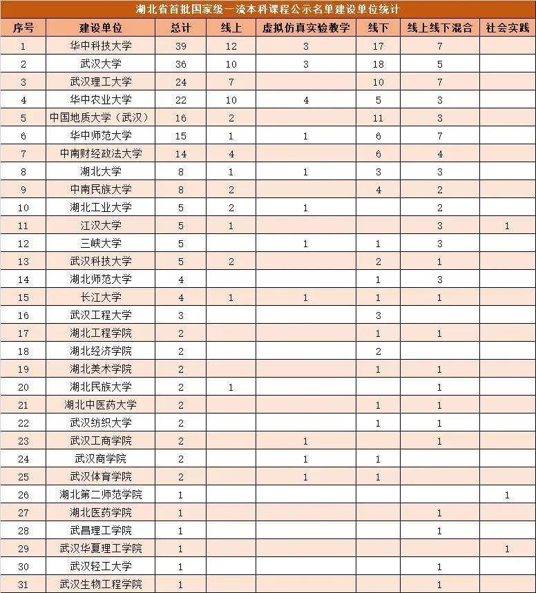 ▲武汉超星关于湖北省首批国家级一流本科课程公示名单建设单位统计图表